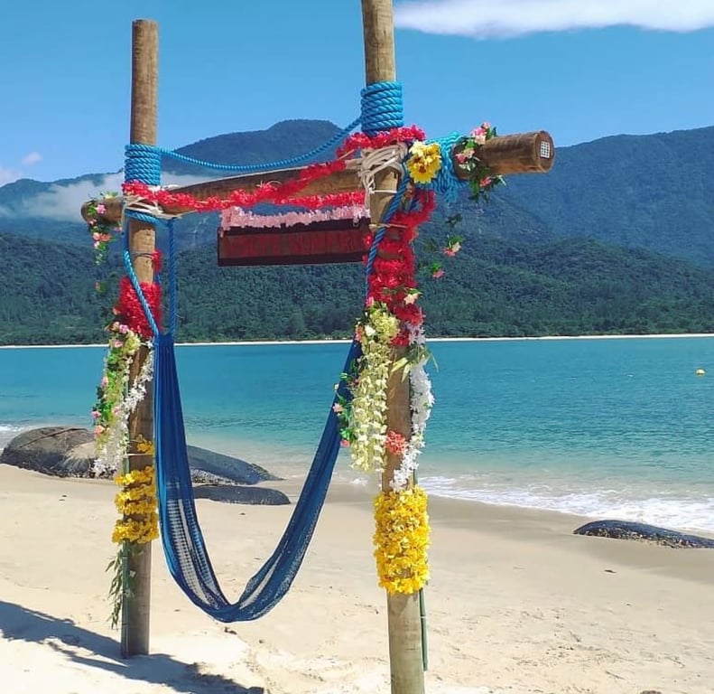 Dirija-se até a entrada da praia de São Gonçalinho, chegando lá, irá se deparar com uma rua que leva até a praia do restaurante "RELÍQUIA DÚ ZÉ" você não deve descer a rua até o final e sim pegar uma pequena trilha a direita onde possui um lindo portal de flores! Entre e ande por poucos metros, Pronto você chegou ao local de embarque!